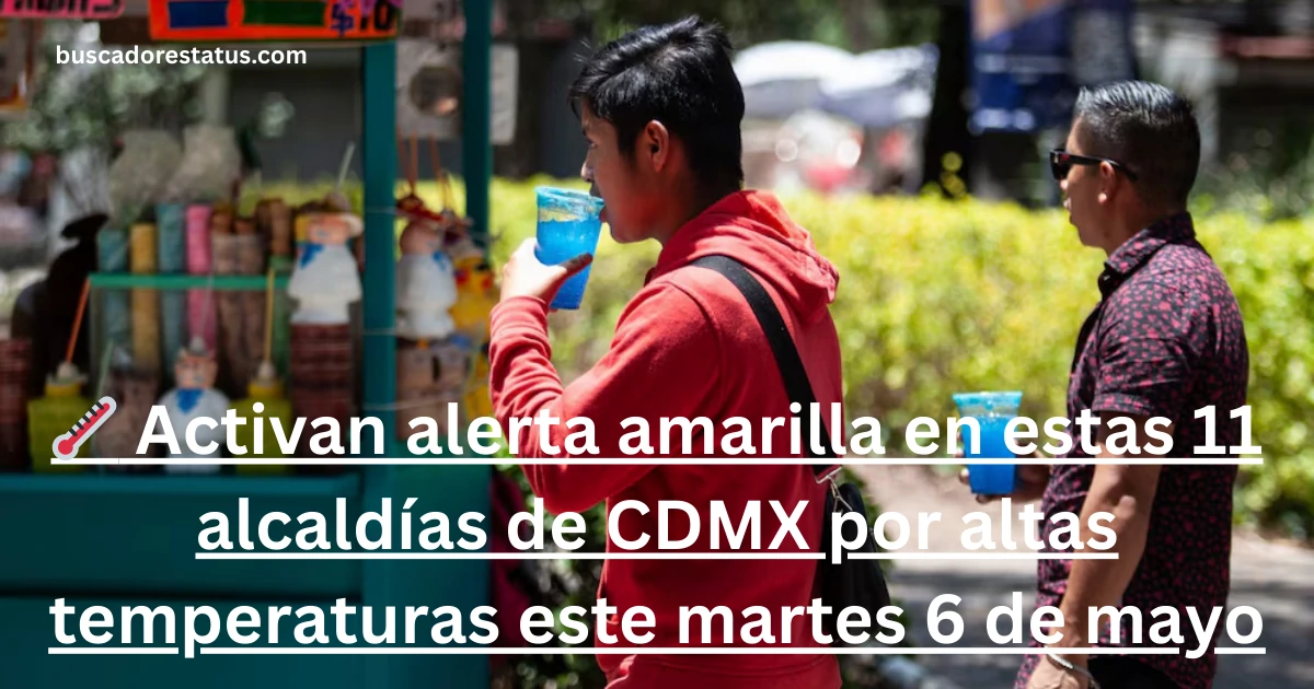 La alerta amarilla por altas temperaturas en la CDMX este martes 6 de mayo afecta a 11 alcaldías. Las autoridades recomiendan tomar medidas de protección para reducir riesgos de salud como golpes de calor o deshidratación. Mantente informado en los canales oficiales y recuerda que la prevención es la mejor herramienta ante fenómenos climáticos extremos.