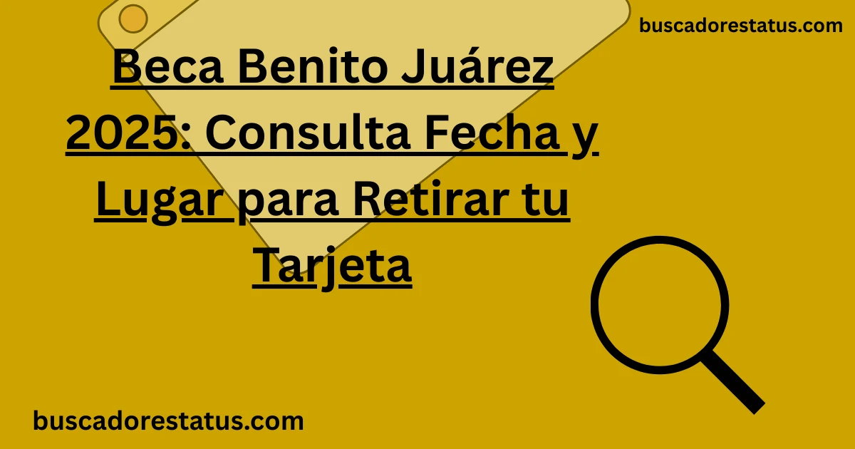 “Consulta en buscadorestatus.com la fecha y lugar asignado para recoger tu Tarjeta del Bienestar de la Beca Benito Juárez 2025. Solo necesitas ingresar tu CURP o folio, imprimir el comprobante y acudir con identificación vigente. Activa tu tarjeta en ventanilla o cajero del Banco del Bienestar y recibe tu apoyo mes a mes sin contratiempos.”