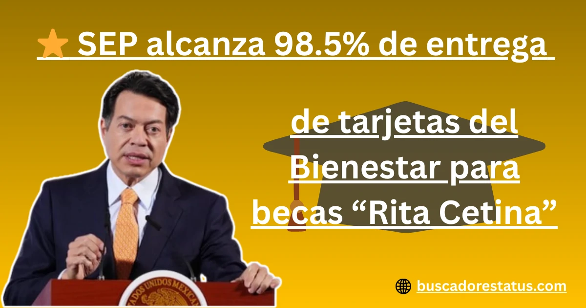 La SEP alcanzó 98.5% de entrega de tarjetas del Bienestar para la beca “Rita Cetina”. Más de 231 mil estudiantes de educación básica ya cuentan con su plástico del Banco del Bienestar, respaldado por una inversión de 15 mil millones de pesos. Este avance asegura continuidad escolar y acceso directo al apoyo económico federal.